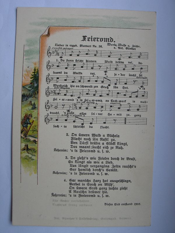 2 Liedkarten Anton Günther, Feieromd, 's Annl mit'n Kannl, Gottesgab Böhmen, #266