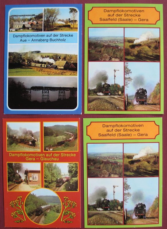 7 Ansichtskarten Dampflokomotiven, Schlettau, Crottendorf, Saalfeld, Sonneberg, Gera, Aue, Annaberg-Buchholz, Glauchau, #411