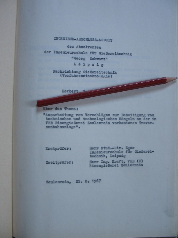 Ingenieur-Abschluss-Arbeit, Gießereitechnik, Zeulenroda 1967