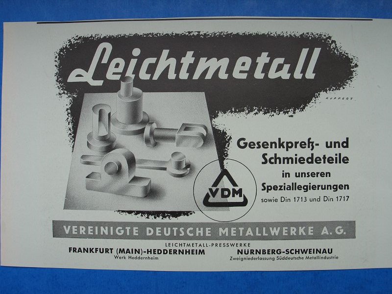 Leichtmetall Presswerke, VDM, Frankfurt- Heddernheim, Nürnberg- Schweinau, Inserat, #1940/2