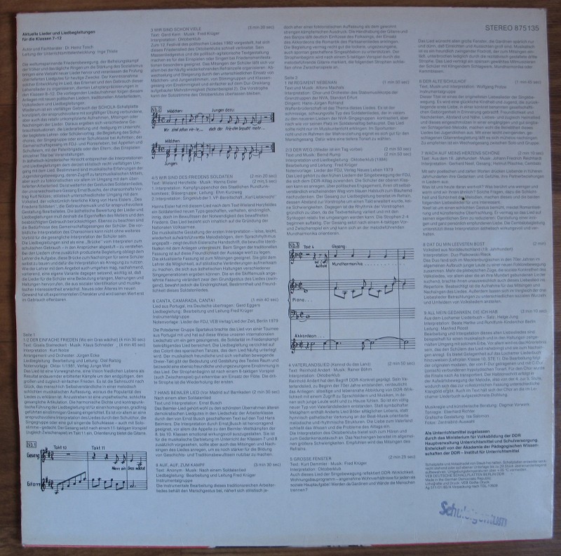 Lieder, Liedbegleitungen, Volkslieder, 4 Schallplatten Schola, DDR, nr453
