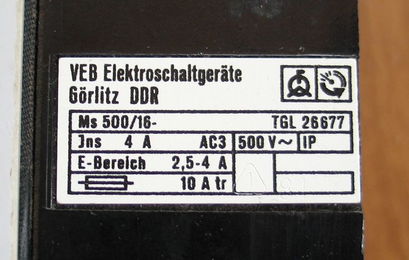 Motorschutzschalter Ms 500/16, 2,5 bis 4 A, DDR, unbenutzt, #17