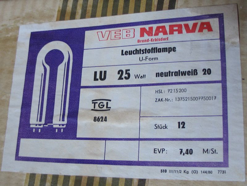 NARVA Leuchtstofflampe U-Form, DDR, unbenutzt