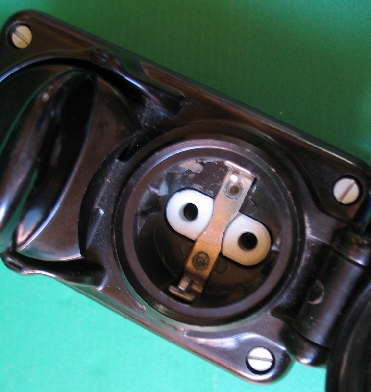 Unter dem Klappdeckel wurden 2 kleine Nasen entfernt, damit auch ein herkömmlicher Schukostecker passt,