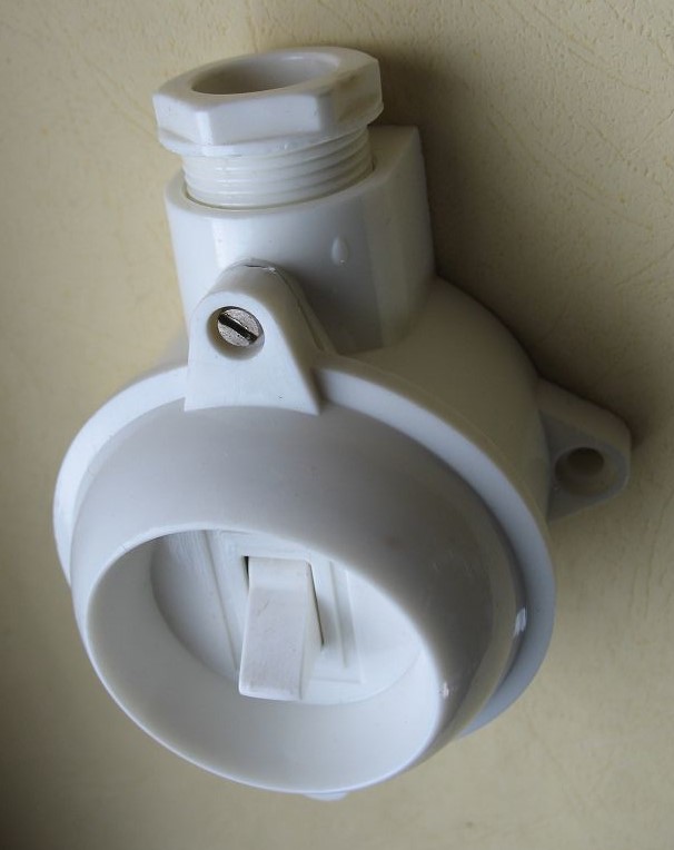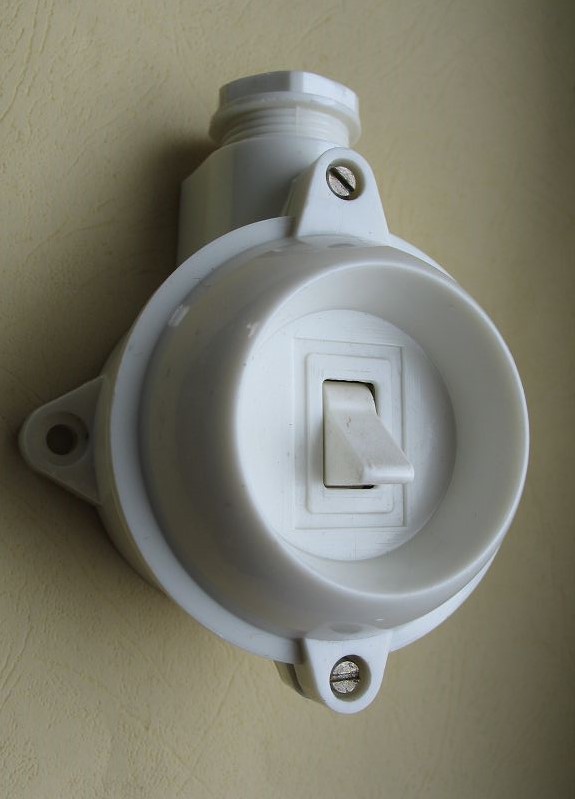 Wechselschalter, Kippschalter, hell, rund, Aufputz, Lichtschalter DDR, unbenutzt, #308