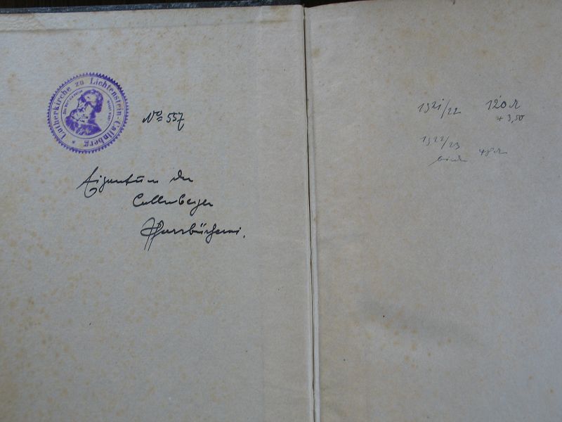 Zustand: außen geringe Gebrauchsspuren, innen bis auf einige Eselsohren und wenige stockfleckige Seiten gut bis sehr gut