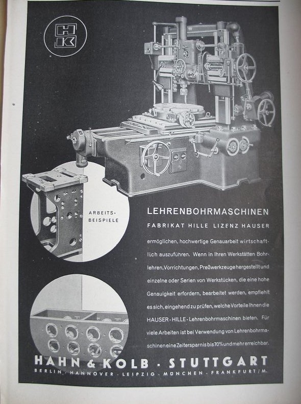 Hahn & Kolb Stuttgart, Lehrenbohrmaschinen, Inserat, #1940/6