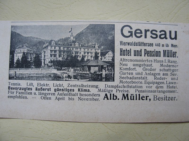 Hotel Müller Gersau, Vierwaldstätter See, Inserat 1909