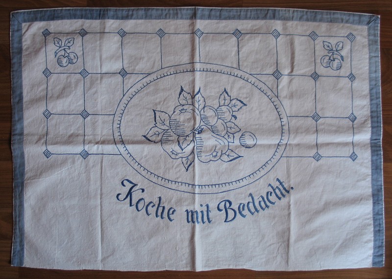 Koche mit Bedacht, handgestickt, Tuch um 1920