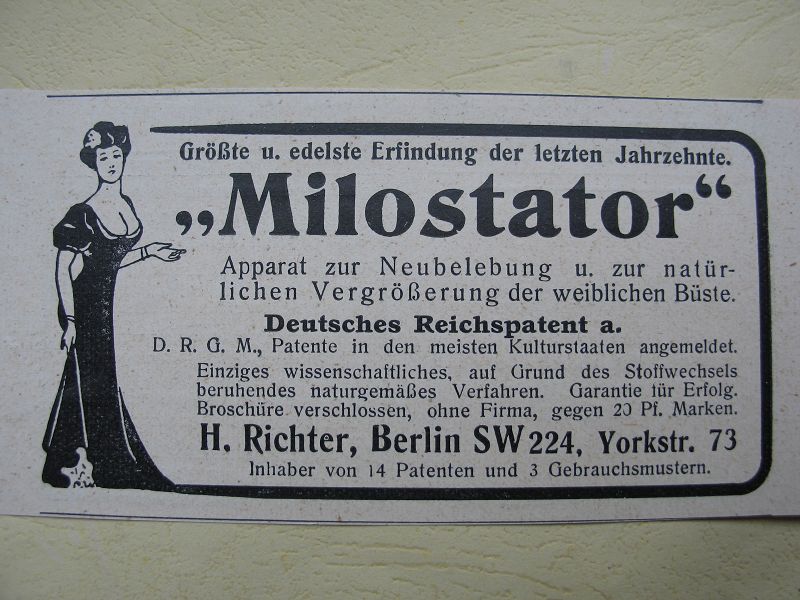 Milostator, H. Richter Berlin, Inserat 1909