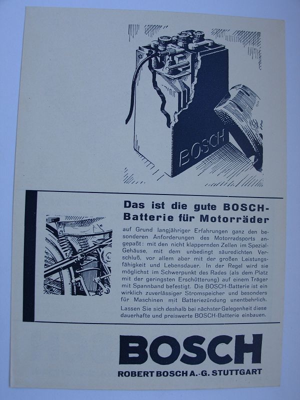 Prospekt Bosch- Batterie, Motorräder und Kraftwagen, 30-er Jahre