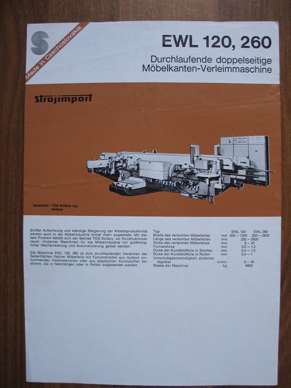 Prospekt EWL 120, 260, Möbelkanten-Verleimmaschine, Strojimport CSSR