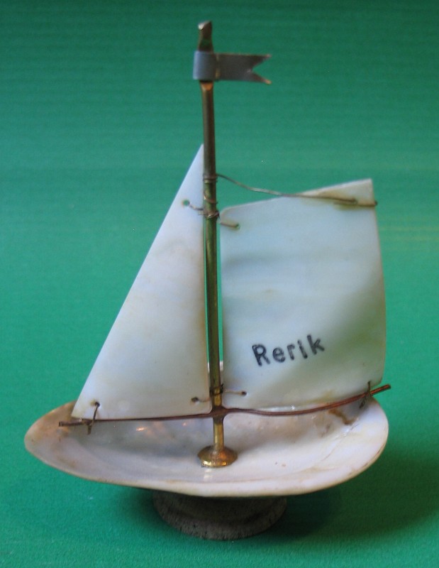 Rerik, Perlmutt Reiseandenken, Segelboot, Muschel, DDR