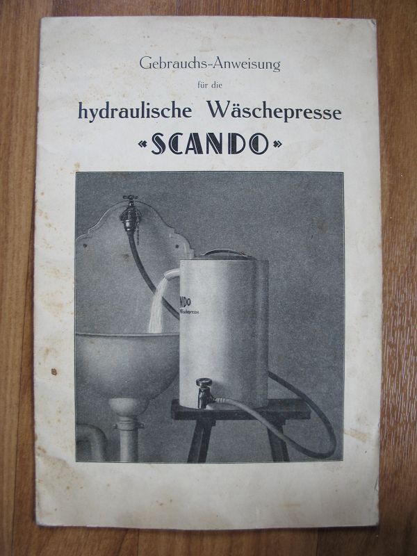 SCANDO hydraulische Wäschepresse, Anleitung/Prospekt Elektrolux, um 1930