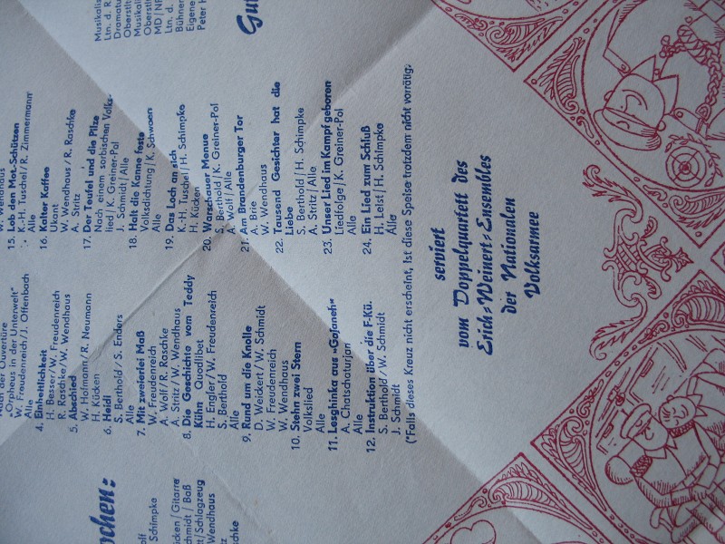 Speisekarte Erich Weinert Ensemble der NVA, DDR, #68