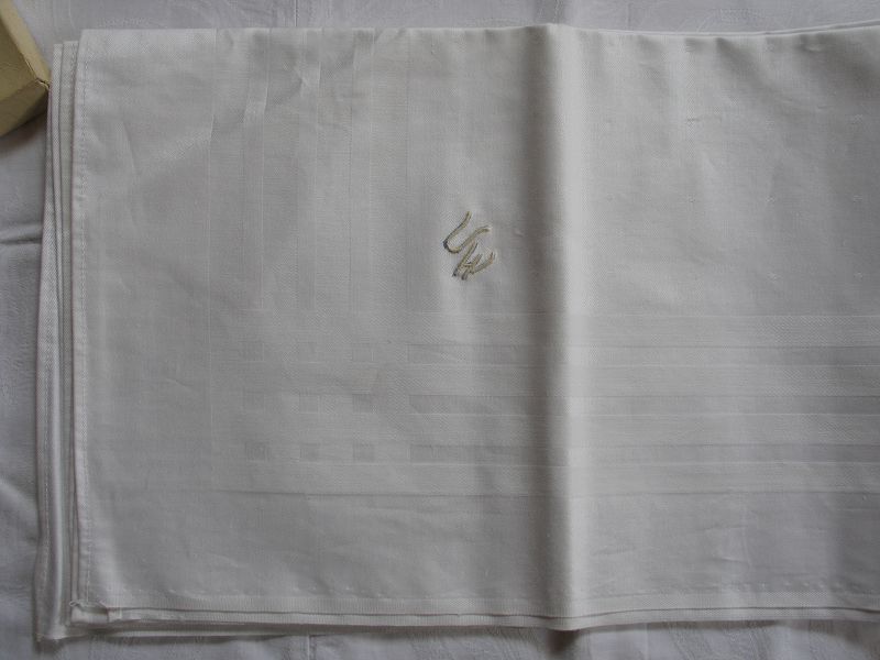 Mit eingestickten Initialen UW.