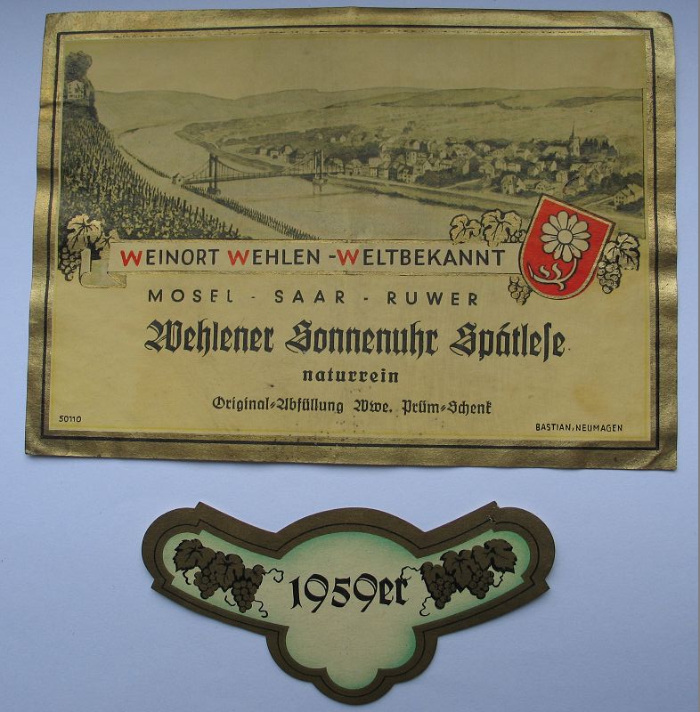 Wehlener Sonnenuhr Spätlese, 1959, Weinetikett, #15