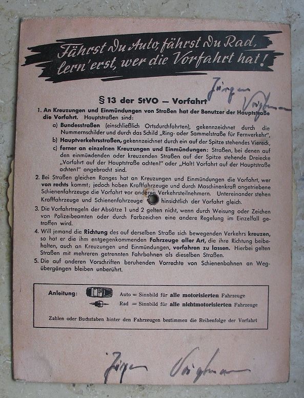 Wer fährt vor Wem?, Drehscheibe H. Baldamus, Fahrschule, Verkehrserziehung